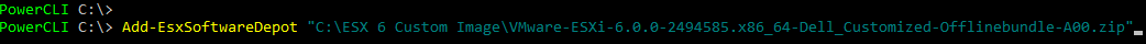 - First add the Dell ESXi zip. Add-EsxSoftwareDepot “C:\file location”